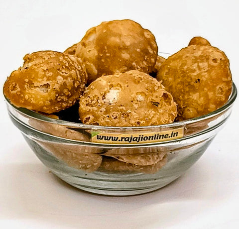 Ready to eat Hing Kachori Mini - Crispy Mild Sweet and Mild Spicy Snacks - Indian Spices Mixture Filling - Ready to Eat Snack - It's made from Refined Wheat flour (maida), Bengal Gram, Sugar, fennel seed, Coriander, Red Chili, Dry Mango powder, Clove, Cumin, Nutmeg, Acidity regulator(Citric acid), Asafoetida, iodized Salt. This is prepared by deep-frying the stuffed flat balls in pure edible oil. Economical and delicious, kachori can be taken for outing with tea, coffee and picnic. Store in a cool and dry place in air tight container, away from sunlight/ humidity. Best before 30 days from date of manufacture.